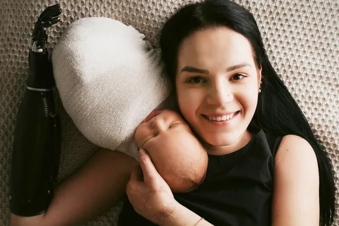 Ярослава в белой детской обмотке положили на плечо инстадивы. Она улыбалась и касалась щекой лица младенца. На еще одном кадре мальчик мирно спал на большой руке отца. Сверху ребенка придерживала механическая ладонь Маргариты.