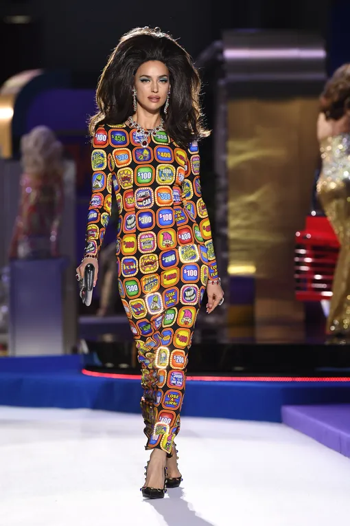 Азартные игры: Ирина Шейк в платье-«джекпот» на показе Moschino в Милане
