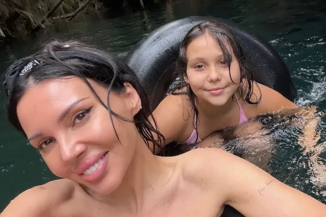 Модель вместе с детьми решилась и на еще один экстремальный поступок. Она показала, как они купаются посреди дикой природы. «Мы просто плаваем где-то в джунглях», — прокомментировала Оксана.