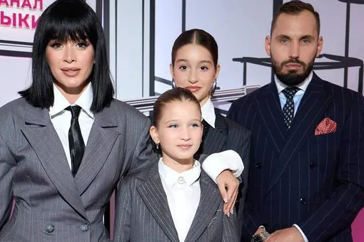 Дочери телеведущей надели стильные брючные костюмы. В таком же аутфите появился и избранник Ксении. Компания смотрелась органично. Маруся и Теона привыкли к вниманию: они улыбались для фотографий в объятиях мамы.