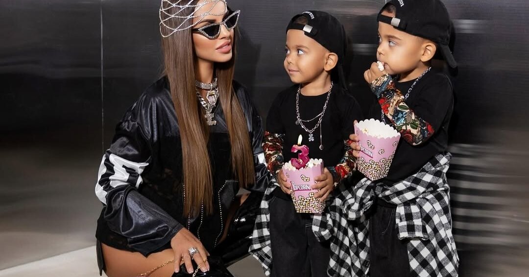 Мать одела мальчиков в стиле юных рэперов. На них были кепки, надетые задом наперед, серебряные цепи и клетчатые шотландки, повязанные на бедрах. Малыши держали в руках сладкий попкорн с именинной свечкой. Сама родительница надела солнцезащитные очки, массивные цепи на шею и ботфорты.