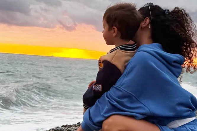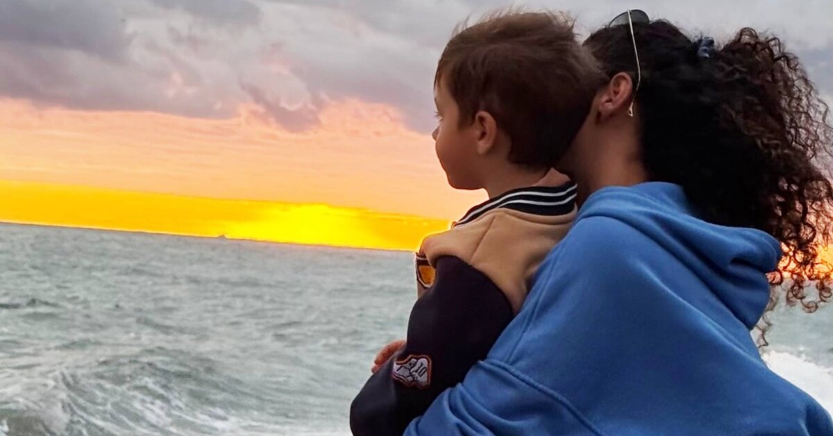 Бывший избранник Агаты Муцениеце также устроил небольшую фотосессию для жены и ребенка. Зепюр сидела на корточках возле моря, держа в объятиях мальчика. На горизонте разгорался живописный закат.