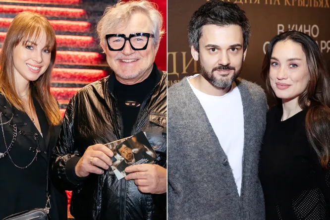 На российскую премьеру многие звезды приехали парами. Дмитрий Дибров появился с женой Полиной. Супруги в своих образах сделали акцент на черный цвет. Телеведущий выбрал куртку в спортивном стиле, а его избранница оригинальный асимметричный жакет с декором из цепей.