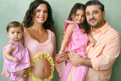 Лиза Моряк и Сарик Андреасян ждут третьего ребенка. Актриса обнародовала трогательные семейные кадры с двумя дочерьми и мужем. Звезда фильма «Онегин» предстала в розовом платье с вырезом на животе, украшенном цветами. Супруги с детьми обнимались, смеялись и выглядели счастливыми (фотограф Валентина Осинцева).