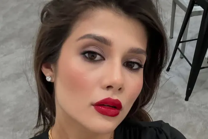 Петрова предпочла стильный и комфортный образ. Она собрала длинные темные волосы в пучок. Виктория нанесла легкий макияж, оттенивший ее природные яркие черты.