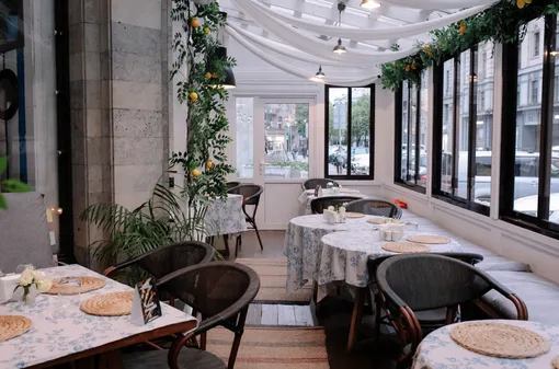Если вы ищете повод задержаться на Петроградской стороне дольше обычного, «Пряности & Радости» на Малой Посадской легко его предоставят. Это не просто ресторан, а что-то вроде культурного центра в гастрономическом обличье: с живой музыкой, верандой в зелени и вечерниками, на которых 90-е звучат с нужной интонацией. Здесь по средам и четвергам поют не под минус, а с настоящими музыкантами, в формате, который сам ресторан называет «караоке-оркестром»: с живой скрипкой, фортепиано и перкуссией. Атмосфера — между клубом, дачным застольем и встречей с друзьями. В меню — сочное хачапури, ризотто с трюфелем, гриль, авторские коктейли и вполне городской ритм: в обед — бизнес-ланч, в воскресенье — бранч. Пространство летней веранды — это отдельный бонус: тишина, много света, мягкие диваны и ощущение, будто вы попали в частный сад в центре Петербурга.