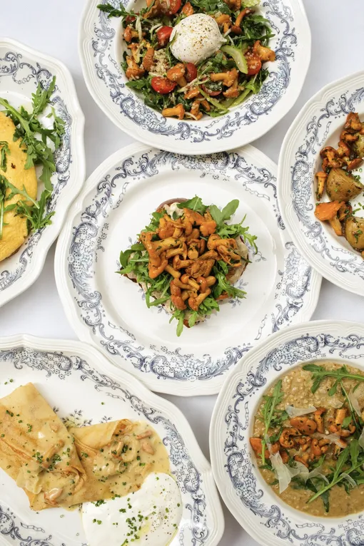 В Faces начался короткий, но выразительный сезон лисичек. Причём сразу в двух разделах: утреннем и основном. На завтрак предлагают омлет с луковым велюте, бриошь с лисичками и рукколой, гречотто и блины. В каждом случае лисички звучат по-разному, от сдержанной сливочности до плотного, грибного вкуса. Днём выбор расширяется: от простого картофеля с обжаренными грибами до спагетти с тартаром из аргентинской креветки и тальятелле со страчателлой. Завершить всё предлагают рюмкой настойки с неожиданным названием — «Лисички в сметане». Вышла красивая гастрономическая зарисовка о лете в северном лесу.