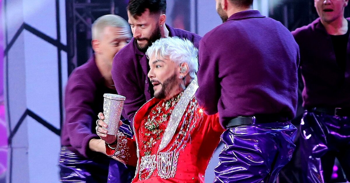 Филипп Киркоров рухнул на спину на «Новой волне-2025» в Казани. Народный артист упал при попытке подняться по движущейся лестнице, шагнув только на ее первую ступеньку. Однако Филипп нашел в себе силы, чтобы продолжить исполнять композицию «Фиолетовая вата» на сцене. Танцовщики помогли подняться.