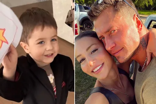 Актриса показала, как Микаэль поздравил папу с Днем защитника Отечества. Мальчик старательно готовился: надел пиджак, выучил стихотворение и нарисовал открытку. «Мой товарищ, мой дружок, я дарю тебе флажок. Со звездою не простой – со звездою золотой», — сказал малыш и вручил Павлу листок с изображением звезды и надписью «папа».