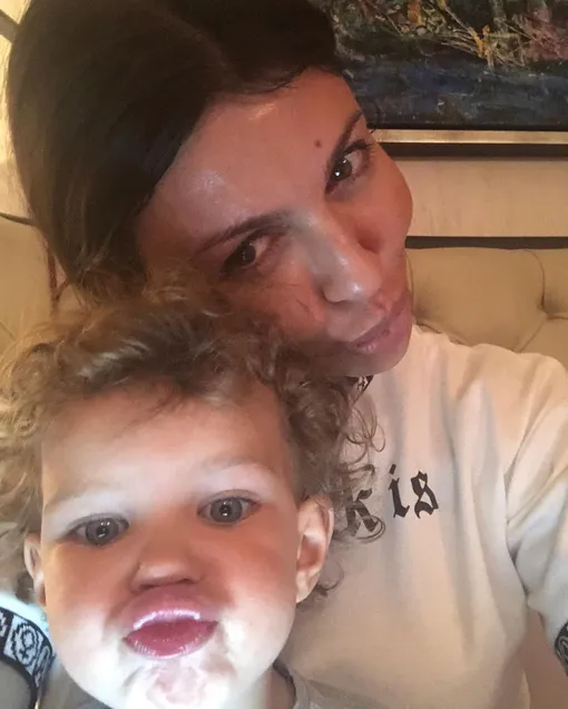 На одной из фотографий Алиса позирует вместе с ребенком, повторяя забавное выражение ее лица. Она также показала Есению дома, у бассейна и на прогулке.