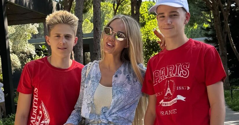 «В Турции жара, хочется уже быстрее окунуться в море», — написала Погребняк. Бывшая избранница футболиста сделала снимок с сыновьями на одной из турецких улиц. На Марии были солнцезащитные очки и легкий летний костюмчик, состоящий из светло-фиолетовой рубашки, завязанной на животе, и шортиков. Юноши надели одинаковые красные футболки. Они с двух сторон обступили маму, которая придерживала коляску с Володей.