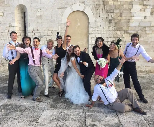 Настоящее торжество по случаю свадьбы супруги устроили через несколько дней в Италии. Первые фотографии с торжества сразу же появились в социальных сетях молодоженов. Для церемонии Диана выбрала классическое платье в пол, расшитое кристаллами. Судя по фото, свадьба была в ретро-стиле: друзья и родные пары были одеты в наряды 30-х годов.