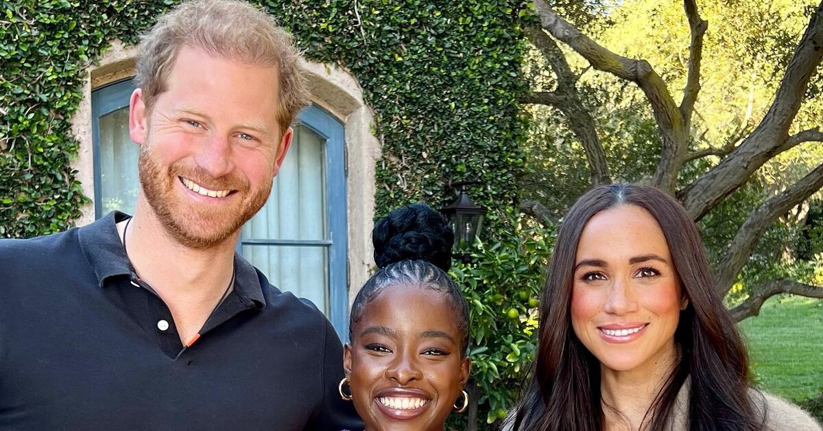 Поэтесса обнародовала снимок с супружеской парой. Гарри предстал в базовой черной футболке поло, а Меган надела белую футболку, набросив на плечи бежевый свитер. Между влюбленными стояла сама поэтесса с широкой улыбкой на лице.
