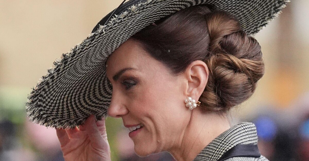 Кейт Миддлтон в шляпке, особенных серьгах и приталенном сером пальто вместе с мужем появилась в соборе