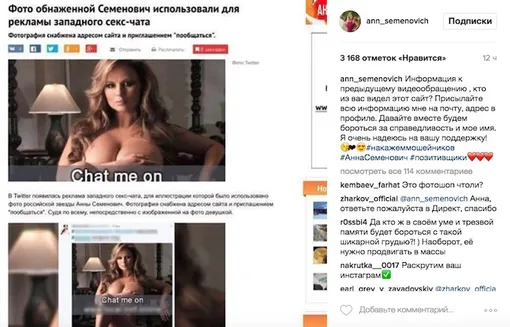 Анна Семенович требует от порносайта 50 миллионов за использование ее снимков