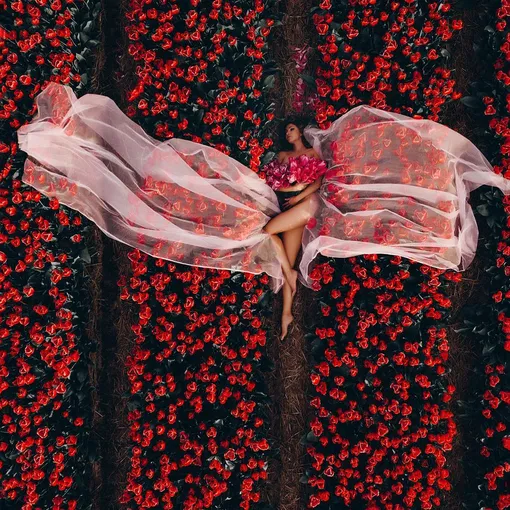 На другом снимке Анастасия лежит посреди поля тюльпанов. Обнаженное тело она прикрыла букетом цветов. Фото было сделано сверху, что придало ему особое очарование. «Смелое утро! Сочные фото! Ласковый ветер! Ароматная жизнь!» — подписала кадр звезда.