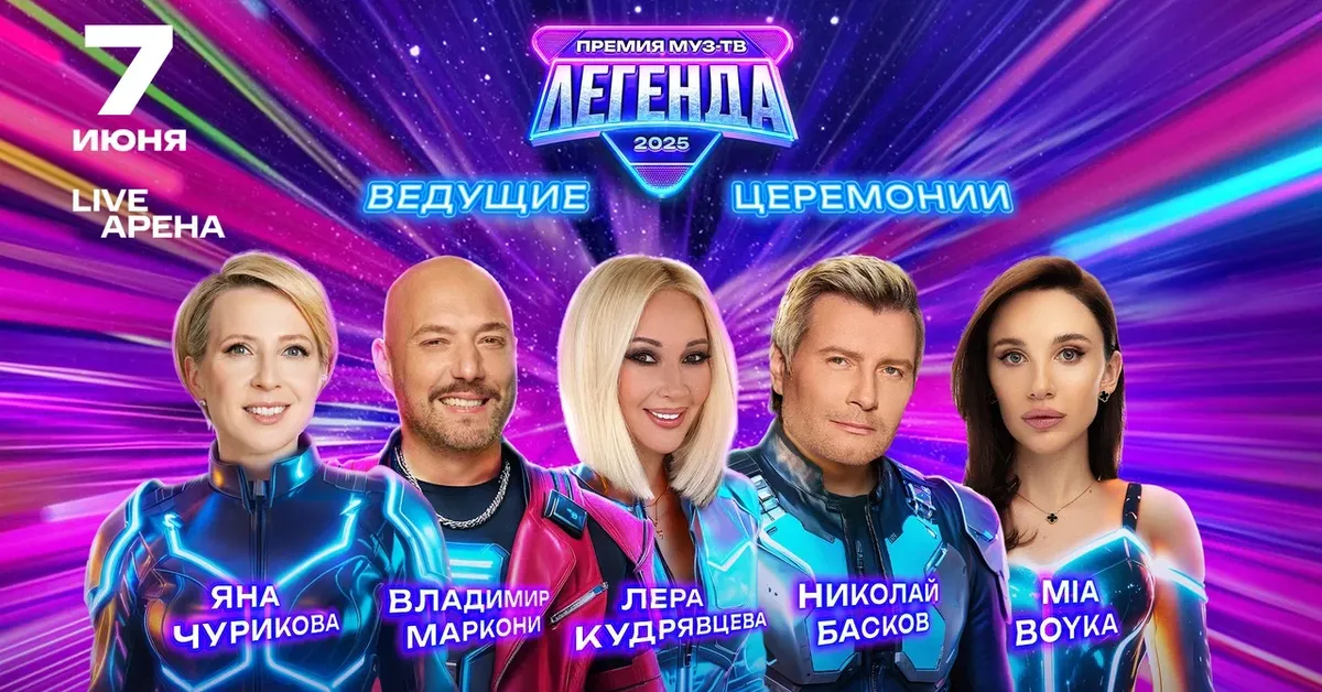 Ведущими Премии МУЗ-ТВ 2025 станет уникальная по составу звёздная пятёрка: обаятельная Яна Чурикова, харизматичный Владимир Маркони, обворожительная Лера Кудрявцева, очаровательная MIA BOYKA и Народный артист России, неподражаемый Николай Басков. Каждый из них по-своему легенда и любимец миллионов зрителей, а вместе они – идеальный микс энергии, юмора, стиля и красоты, который точно не заставит скучать!