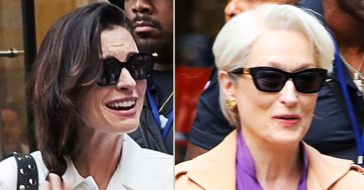 Энн Хэтэуэй и Мерил Стрип впервые вместе заметили на съемках фильма «Дьявол носит Prada 2»