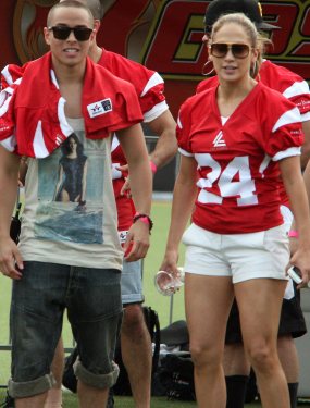 Дженнифер Лопес и ее бойфренд Каспер Смарт приняли участие в благотворительном матче по американскому футболу, который был организован в поддержку пострадавших от урагана Сэнди.