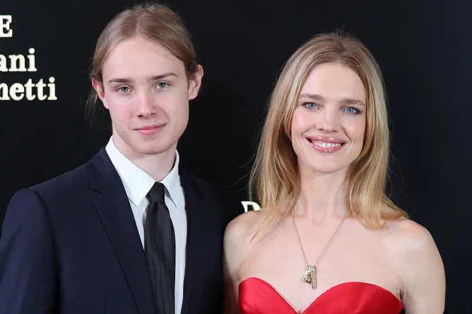 43-летняя топ-модель прибыла в сопровождении своего 16-летнего сына Виктора Портмана. На красной дорожке Наталья сыграла на сложных контрастах и фактурах: платье в пол сочетало плотный черный бархат с вышивкой в виде цветов и гладкий красный атлас лифа, подчеркивающий линию декольте.