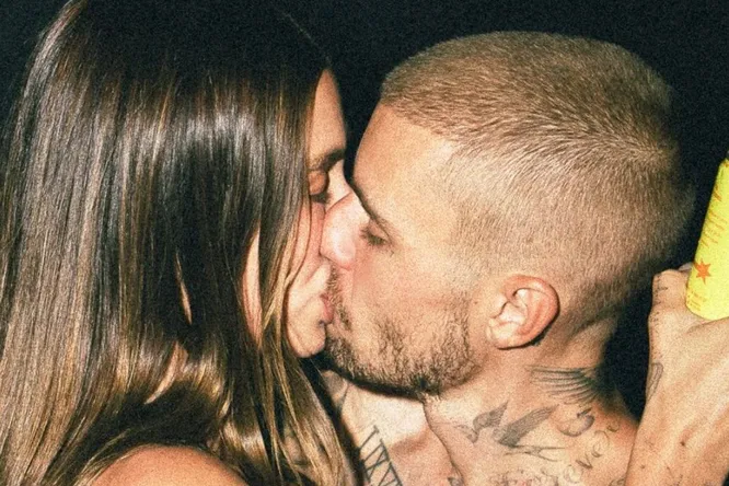 Модель обнародовала страстный снимок с мужем, сделанный на вечеринке. Хейли в черном микротопе поцеловала Джастина, который позировал полуголым, засветив многочисленные татуировки.