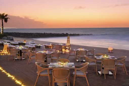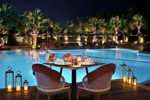Если вы мечтаете о предложении, которое запомнится навсегда, Delano Dubai — это локация, где эстетика и эмоции сливаются воедино. Отель расположен на острове Bluewaters и предлагает безупречно романтичные сценарии: ужин на закате в ресторанe Blue Door среди зелени и мерцающих огней, прогулка вдоль уединённого пляжа, усыпанного лепестками роз, или момент признания под открытым небом на террасе пентхауса с видом на Персидский залив. В интерьерах отеля царит чувственная минималистичная роскошь, а команда ресторанов и служба консьержей помогут продумать каждую деталь вашего вечера: от живой музыки и авторских коктейлей до специально сервированного стола в Rose Bar или на частной кабане у воды. Здесь всё создано, чтобы самые важные слова прозвучали красиво, искренне — и остались в памяти навсегда