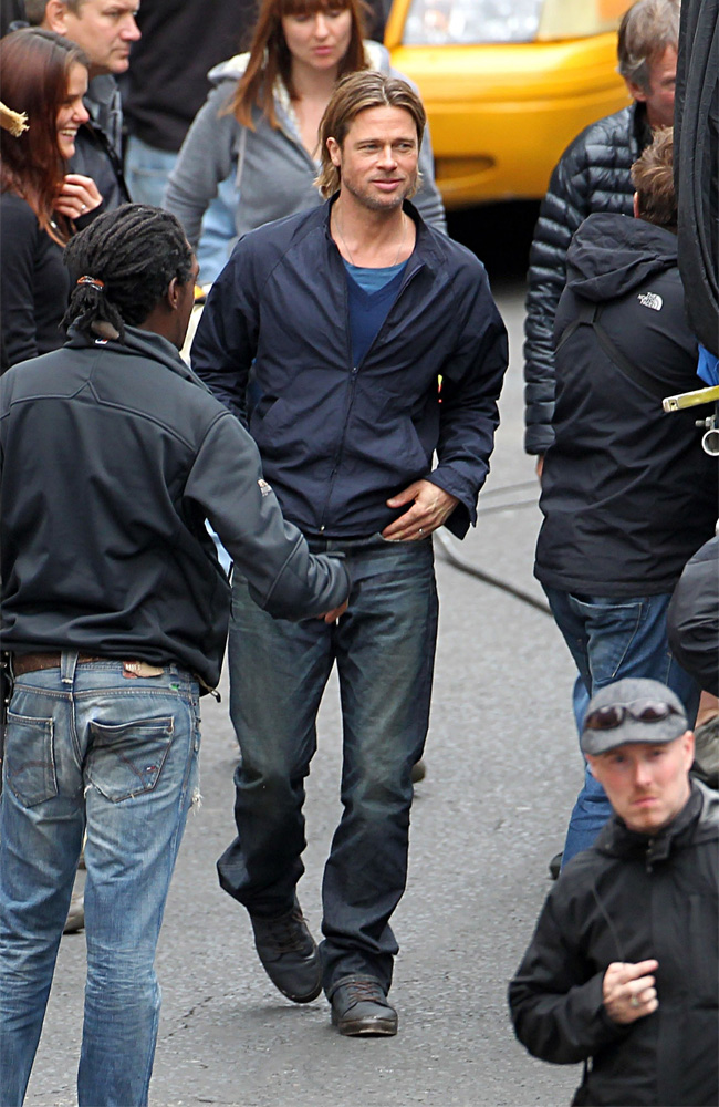 Актер Брэд Питт на площадке своего нового фильма «Мировая война Z» в Глазго.