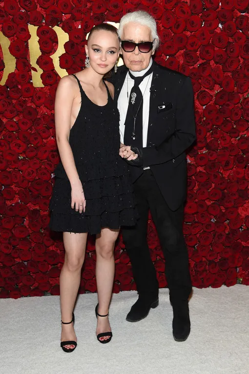 Карл Лагерфельд и Лили-Роуз Депп в маленьком черном платье Chanel на премии