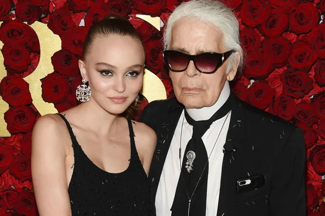 Карл Лагерфельд и Лили-Роуз Депп в маленьком черном платье Chanel на премии