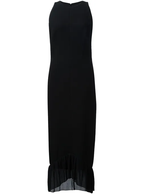 Для выхода в свет Виктория выбрала платье-футляр длины миди из коллекции своего бренда. Модель, украшенную оборками на подоле, Бекхэм дополнила черными босоножками на высоком каблуке.