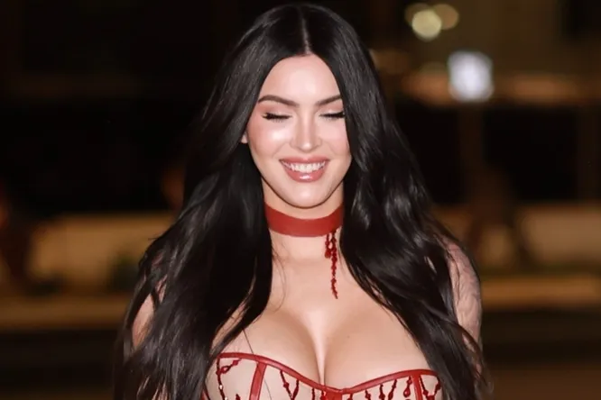 Актриса появилась на мероприятии в Лос-Анджелесе. Фокс тщательно продумала свой образ. Меган надела платье нюдового оттенка с корсетным верхом. Наряд был расшит алыми нитями, которые казались «кровавыми».