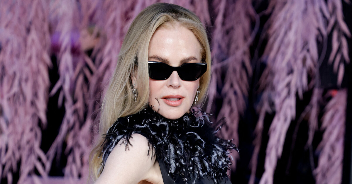 Похудевшая после развода Николь Кидман в платье с перьями вышла на подиум в Париже