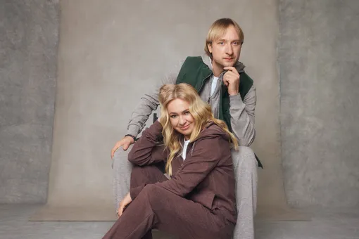 Евгений Плющенко предстал перед объективом в нескольких образах. Объемный бежевый кардиган стилисты соединили на нем с бежевыми чиносами. А зеленый утепленный жилет в одном из самых популярных оттенков сезона – с комфортным бежевым спортивным костюмом.