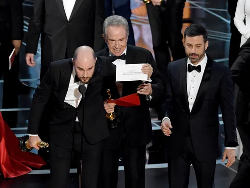 На сцену поднялась вся команда, работавшая над фильмом. Но во время оваций один из продюсеров подошел к микрофону и произнес: «Ребята, "Лунный свет" — лучший фильм. Это вы, поднимайтесь! Я серьезно, тут ошибка, смотрите сами». Затем он достал из конверта имя победителя, и им оказался фильм «Лунный свет».