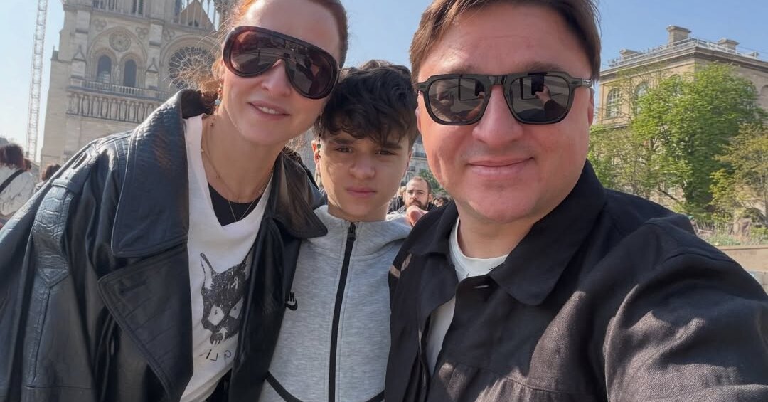 Лагашкин и Стулова в очках с темными стеклами позировали на фоне Нотр-Дам-де-Пари. Они улыбались. Между ними стоял сын Лука, который сохранял серьезное выражение лица.