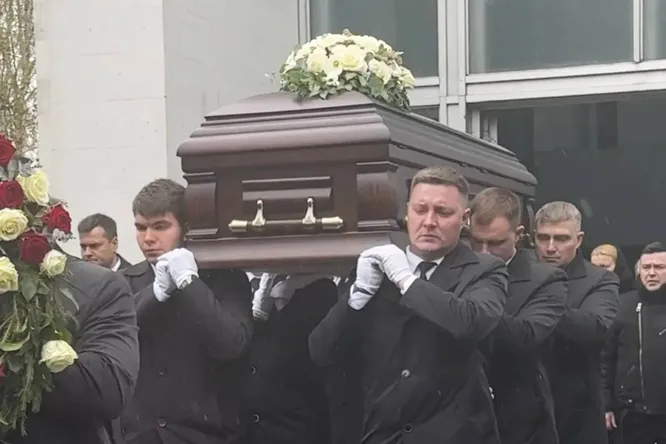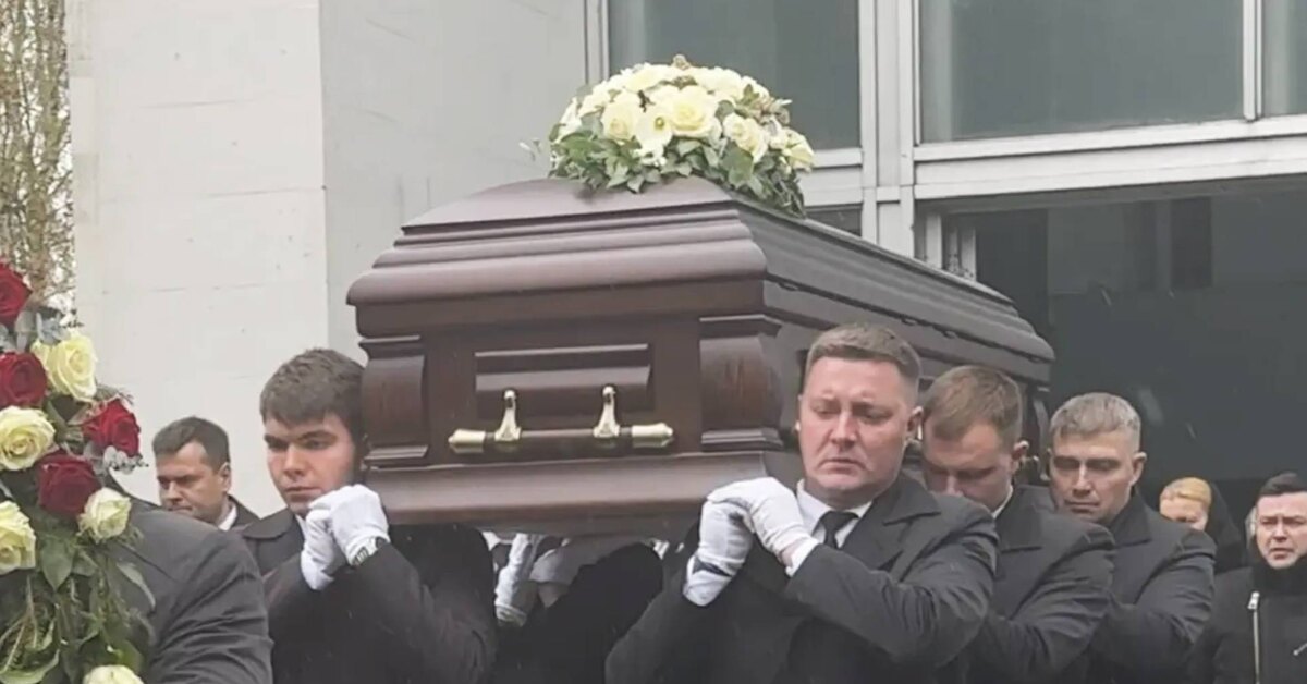 Гроб с телом Алексея Пиманова после прощания с ним вдовы вынесли из траурного зала Троекуровского кладбища — видео