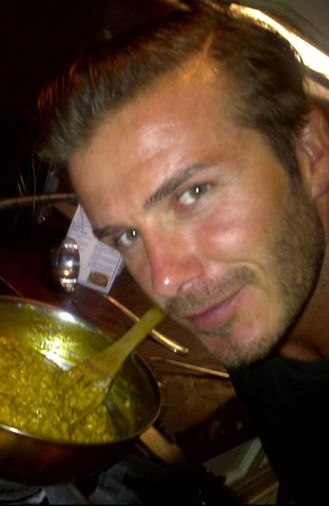 Футболист Дэвид Бекхэм готовит обед для своей огромной семьи.