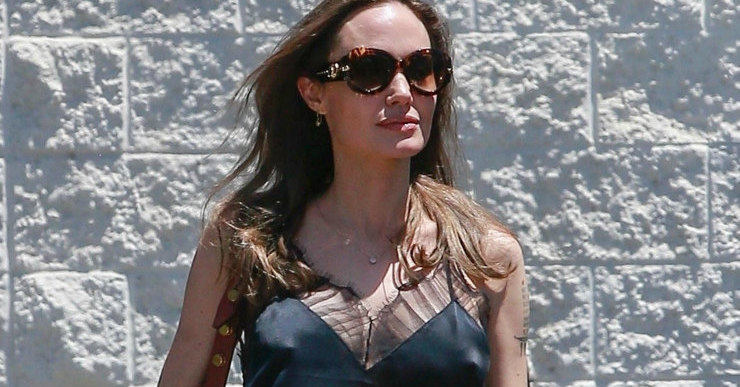 Анджелина Джоли в топе с глубоким декольте без белья побывала в салоне красоты