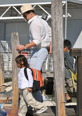 Все свободное от официальных мероприятий время Брэд проводит с сыновьями. Вчера троица совершила прогулку по каналам города. Мэддокс и Пакс были в восторге от этой водной прогулки.