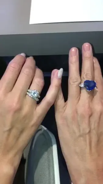 Яне тоже было чем похвастаться. Блондинка продемонстрировала кольцо в виде сердца с большим синим камнем, которое ей подарил муж Евгений Плющенко. «Мы с Евгением вместе 12 лет, а в браке – 10. Желаю Даше увеличивать каратность каждую годовщину свадьбы», — с иронией написала Рудковская в своем телеграм-канале «Голубь мира».