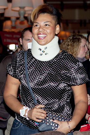 Теперь Корнелии приходится ходить в специальном шейном корсете. Впрочем, он не мешает Корнелии сохранять хорошее настроение и чувство юмора. Тем более, она понимает, что все могло закончиться куда хуже.