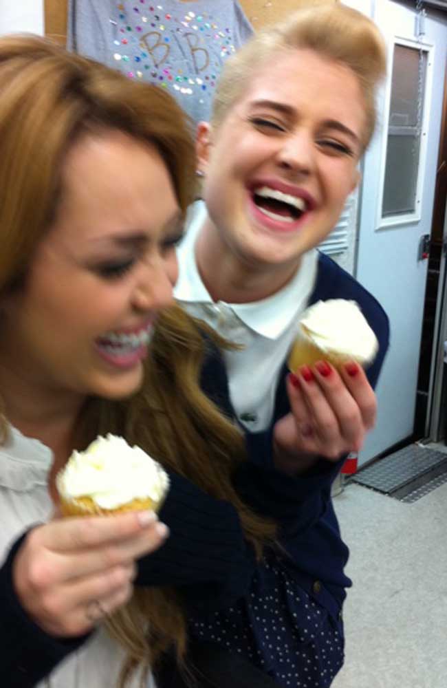 Келли Осборн и Майли Сайрус едят кексы и веселятся.