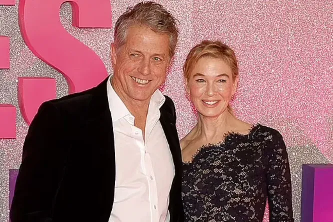 Рене Зеллвегер в кружевном платье с обнаженным плечом появилась с Хью Грантом в Париже