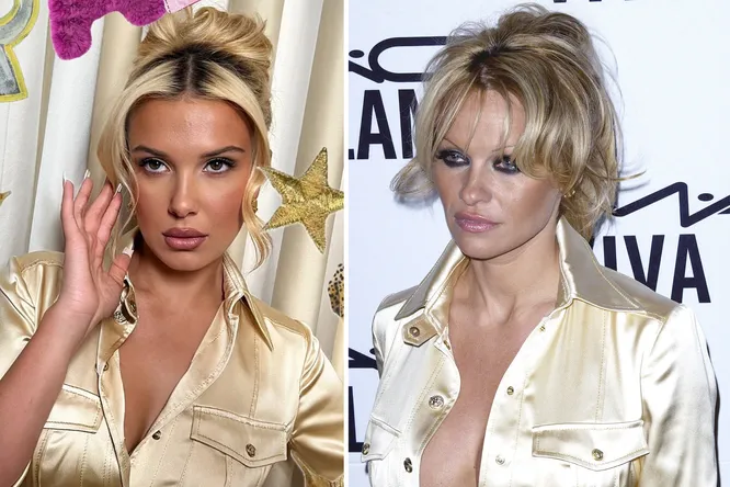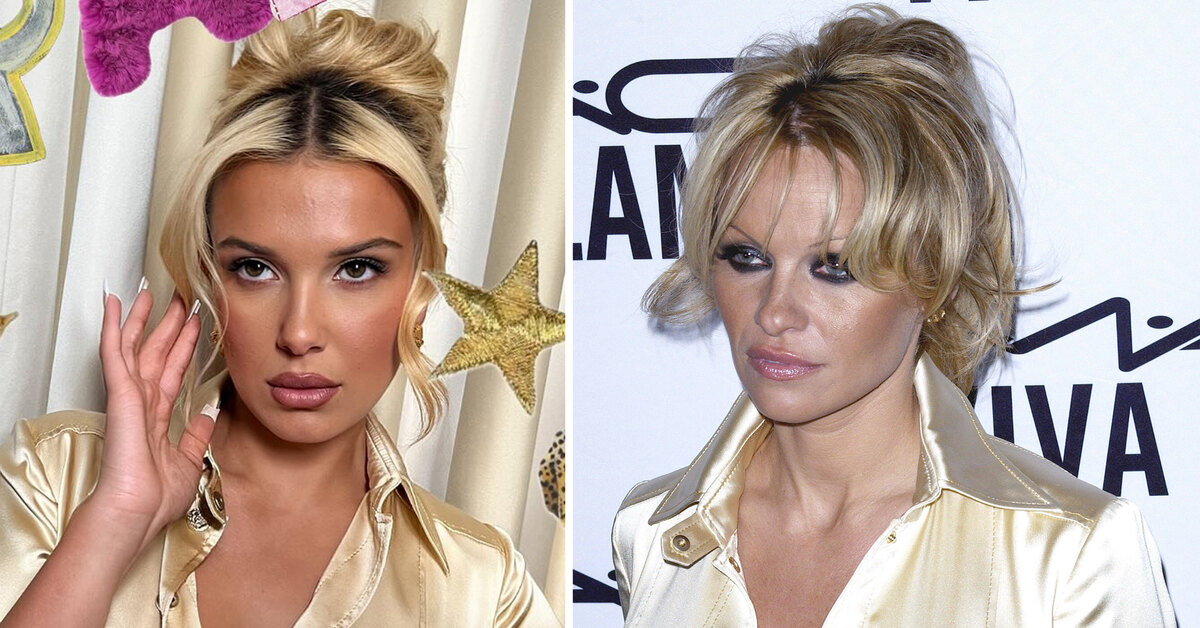Милли Бобби Браун в шелковом платье повторила культовый образ Памелы Андерсон