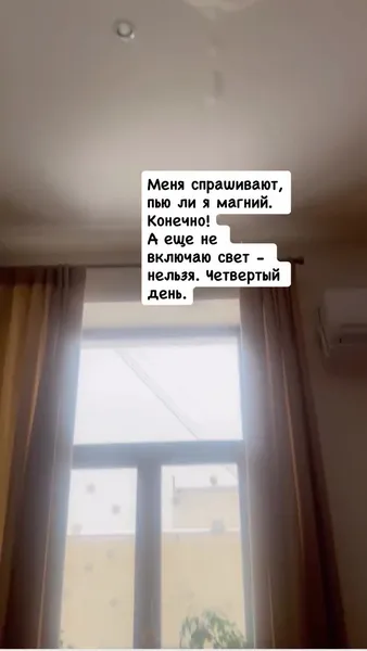 Жена Евгения Цыганова сняла на видео происходящее в квартире. В нескольких местах с потолка капала вода в специально для этого поставленные на пол емкости. «Меня спрашивают, пью ли я магний. Конечно! А еще не включаю свет — нельзя. Четвертый день», — рассказала Снигирь.