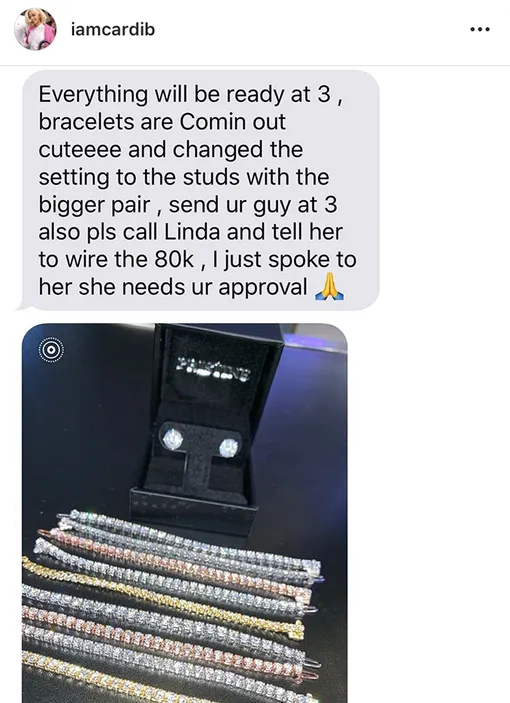 Карди Би подарила 10-месячной дочке девять бриллиантовых браслетов и серьги