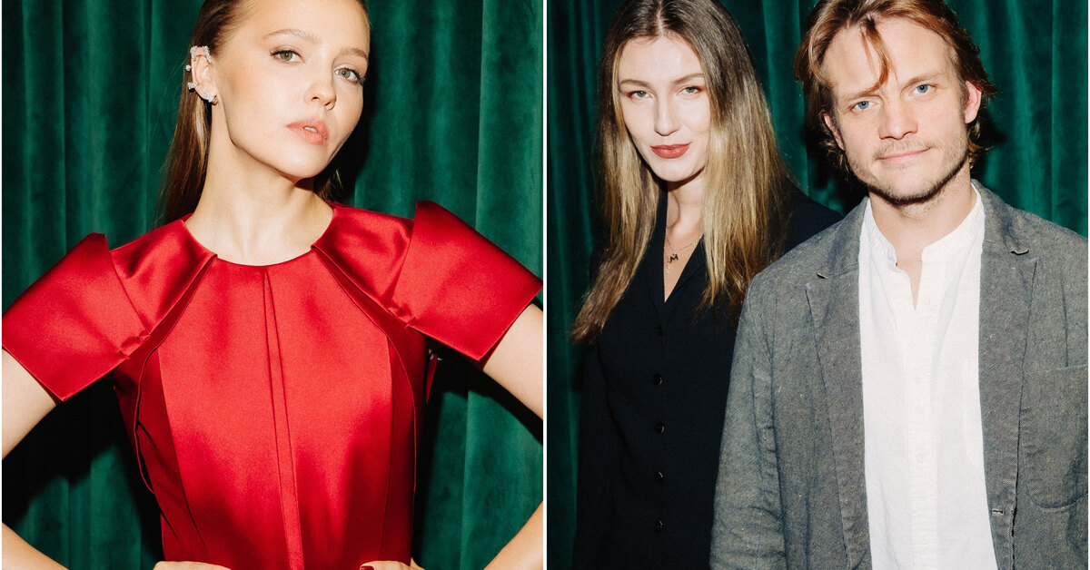 Юлия Хлынина в элегантном образе и Евгений Ткачук с женой представили фильм «Волчок»