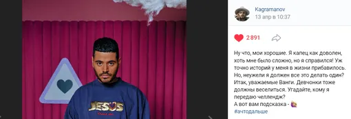 Первым необычный челлендж на своей странице в соцсети запустил известный комик Роман Каграманов, который устроил «день самоуправления» и разрешил фолловерам управлять своими действиями.