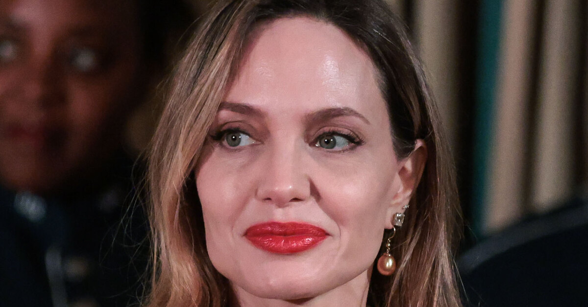Для появления на торжественном мероприятии Анджелина выбрала эффектный образ. Она надела белое вечернее платье и сделала яркий макияж с акцентом на алые губы.