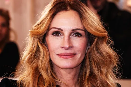 Для выхода в свет актриса надела черное пальто миди с фактурной отделкой, которое было подпоясано ремнем в тон. Образ дополнили солнцезащитные очки, серые шерстяные минетки и кожаная сумка через плечо насыщенного изумрудного цвета. Джулия Робертс разделила волосы пробором посередине и уложила их вьющимися локонами.